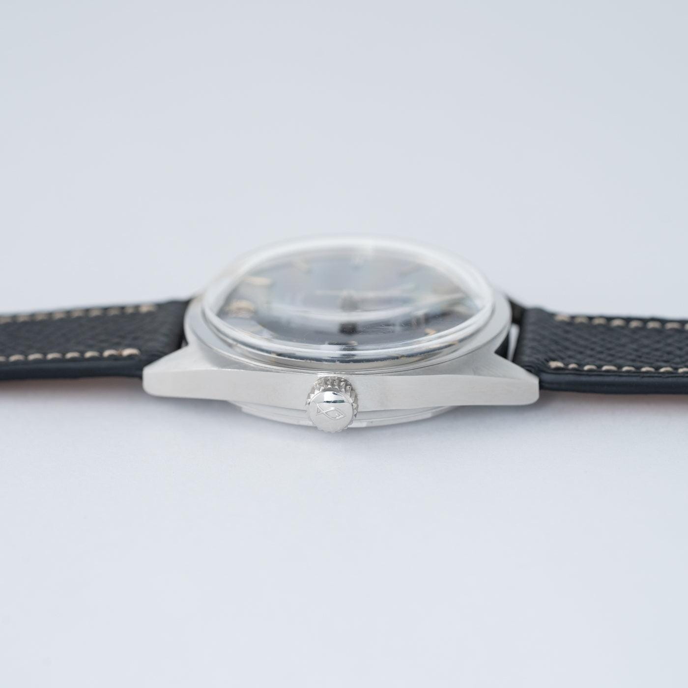 リューズは当時の防水ケースを示す、魚マークのリューズです。