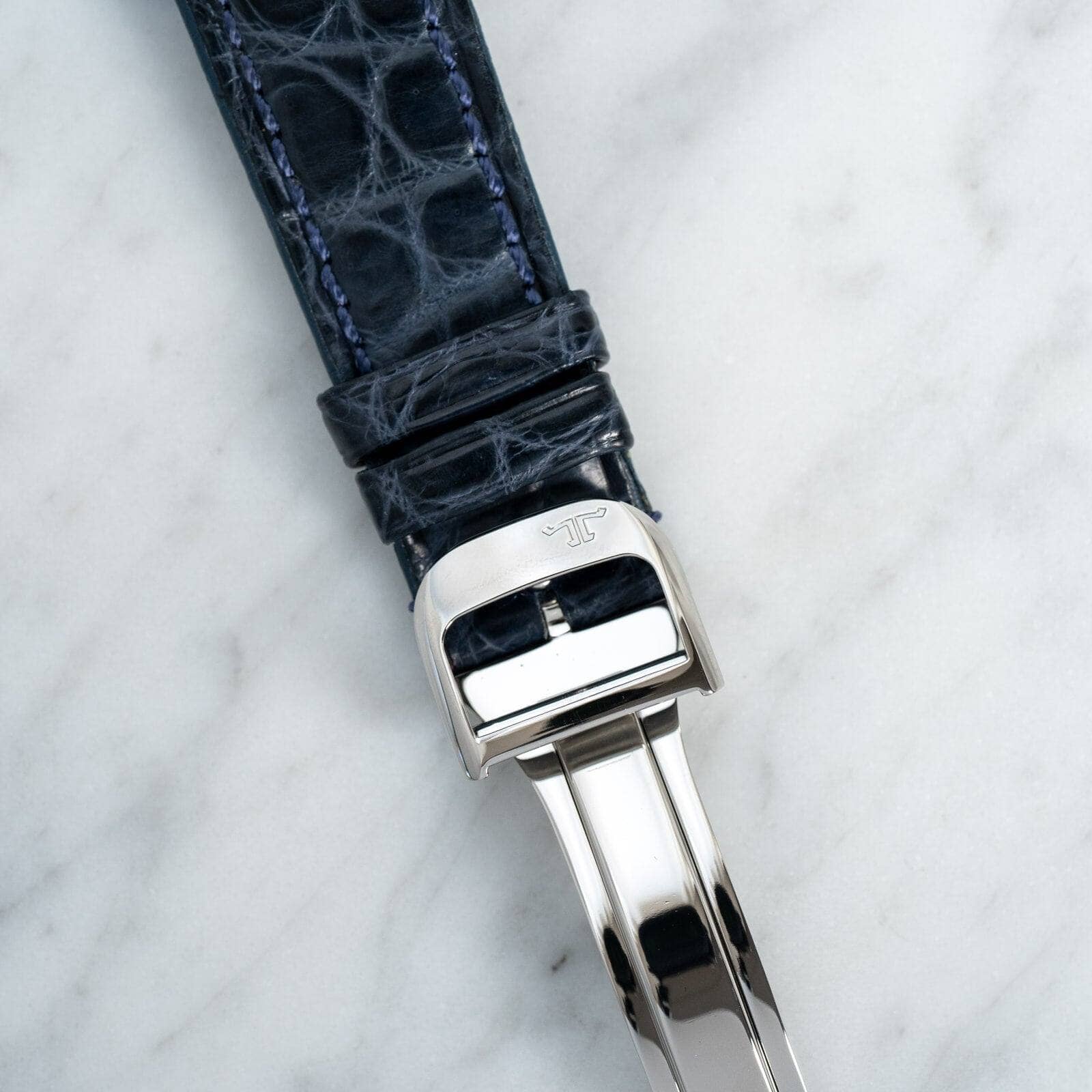It comes with a genuine stainless steel Deployant-buckle and an genuine steel bracelet, both are signed JLC.