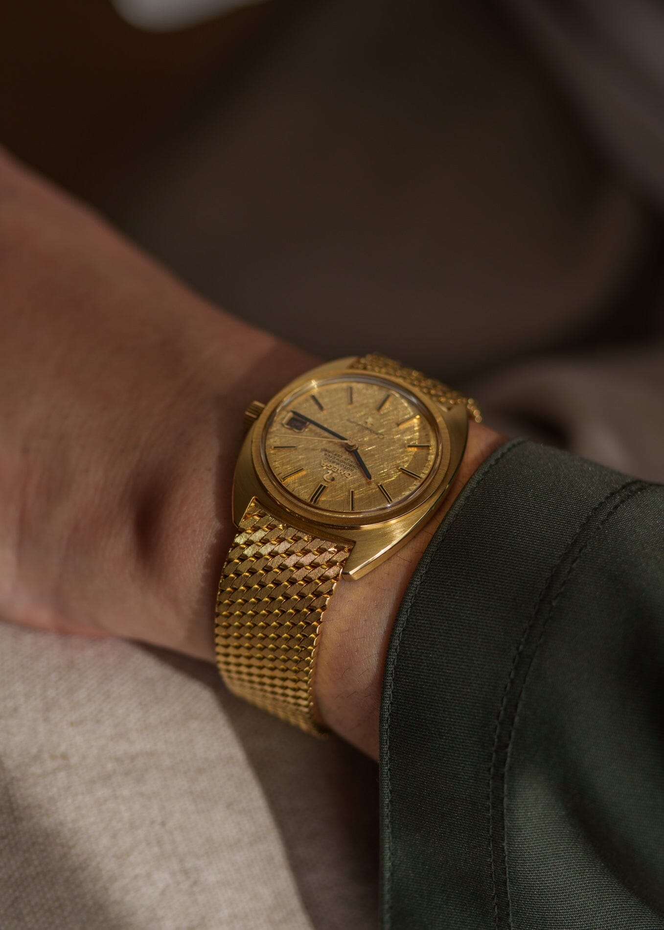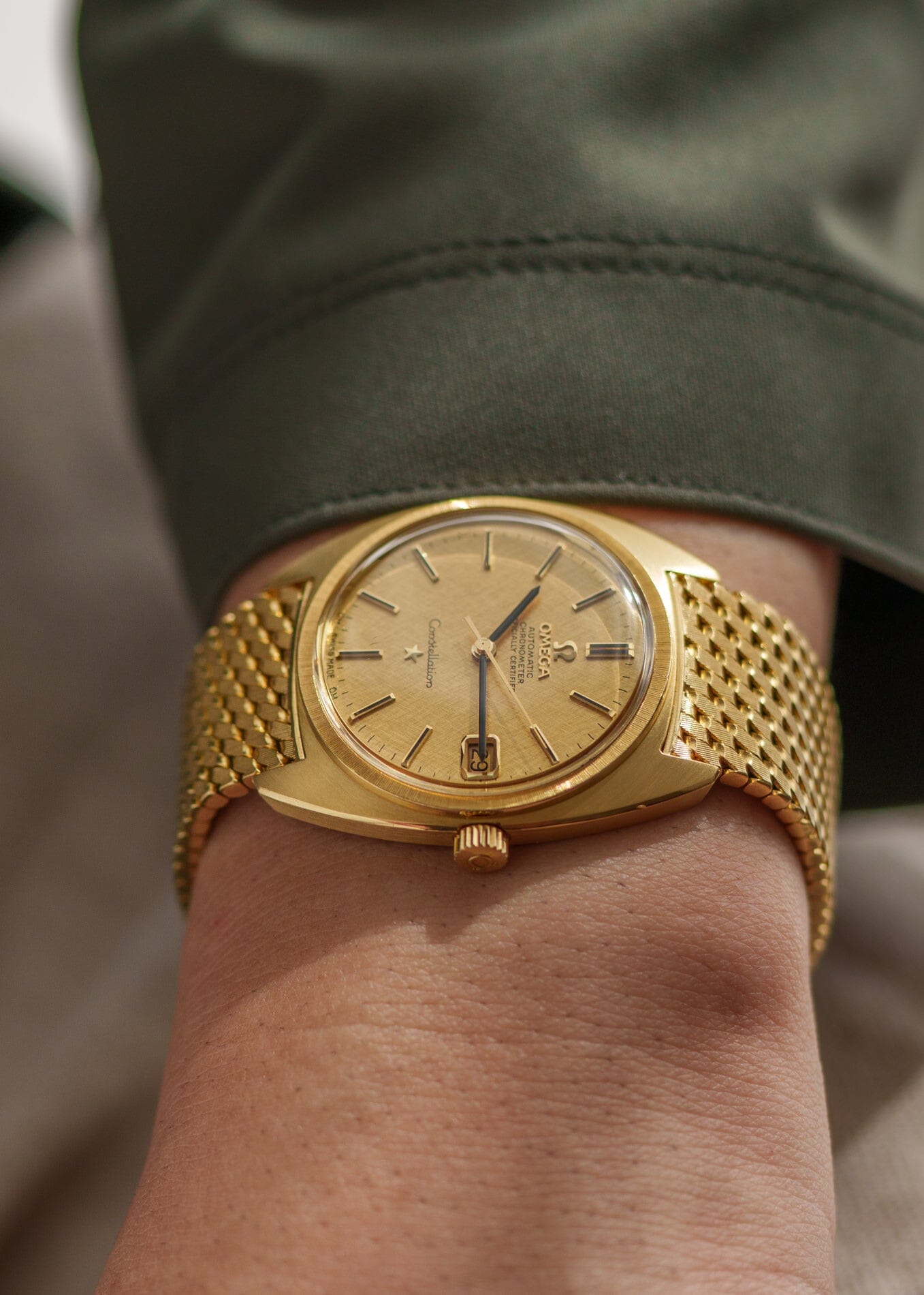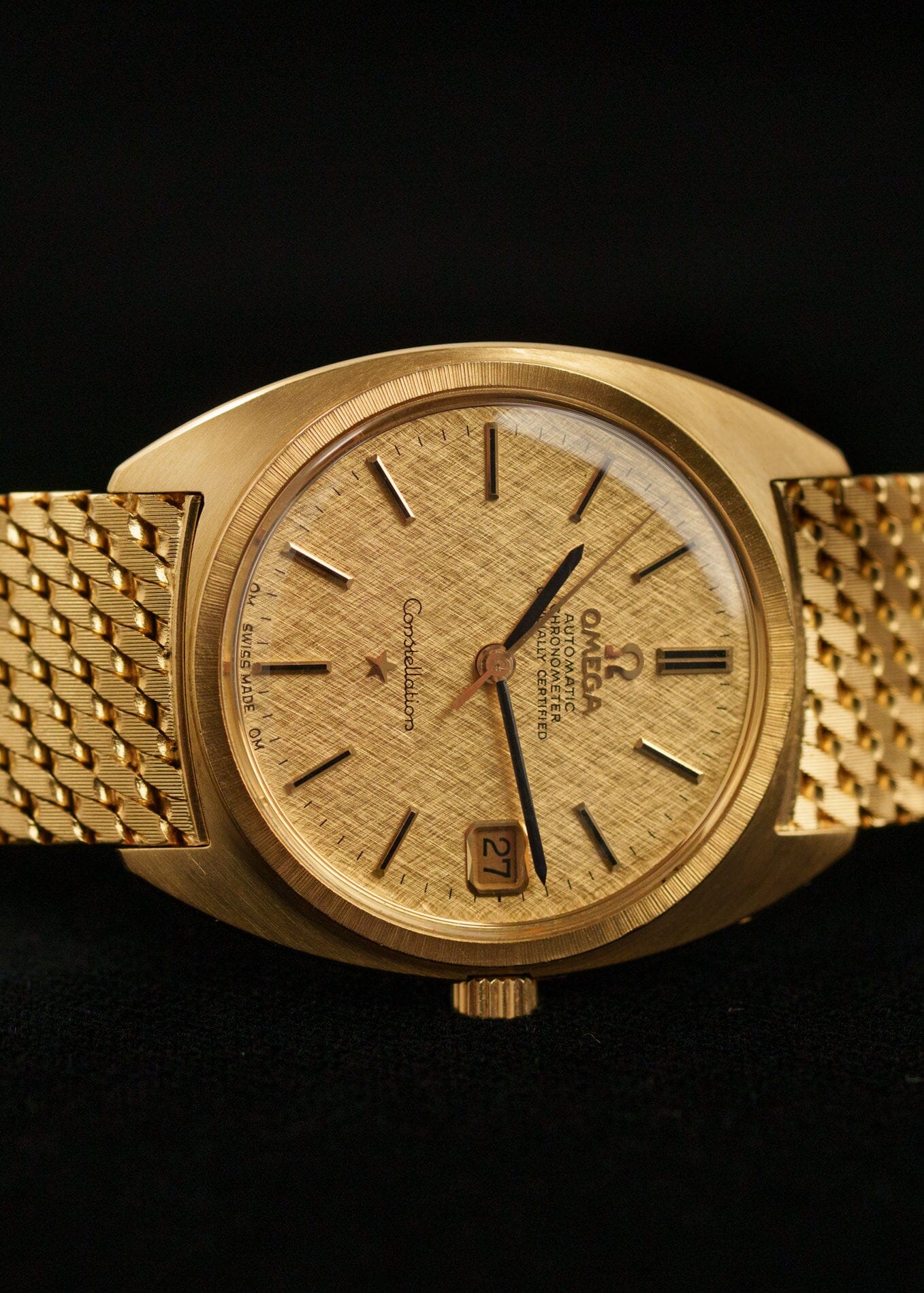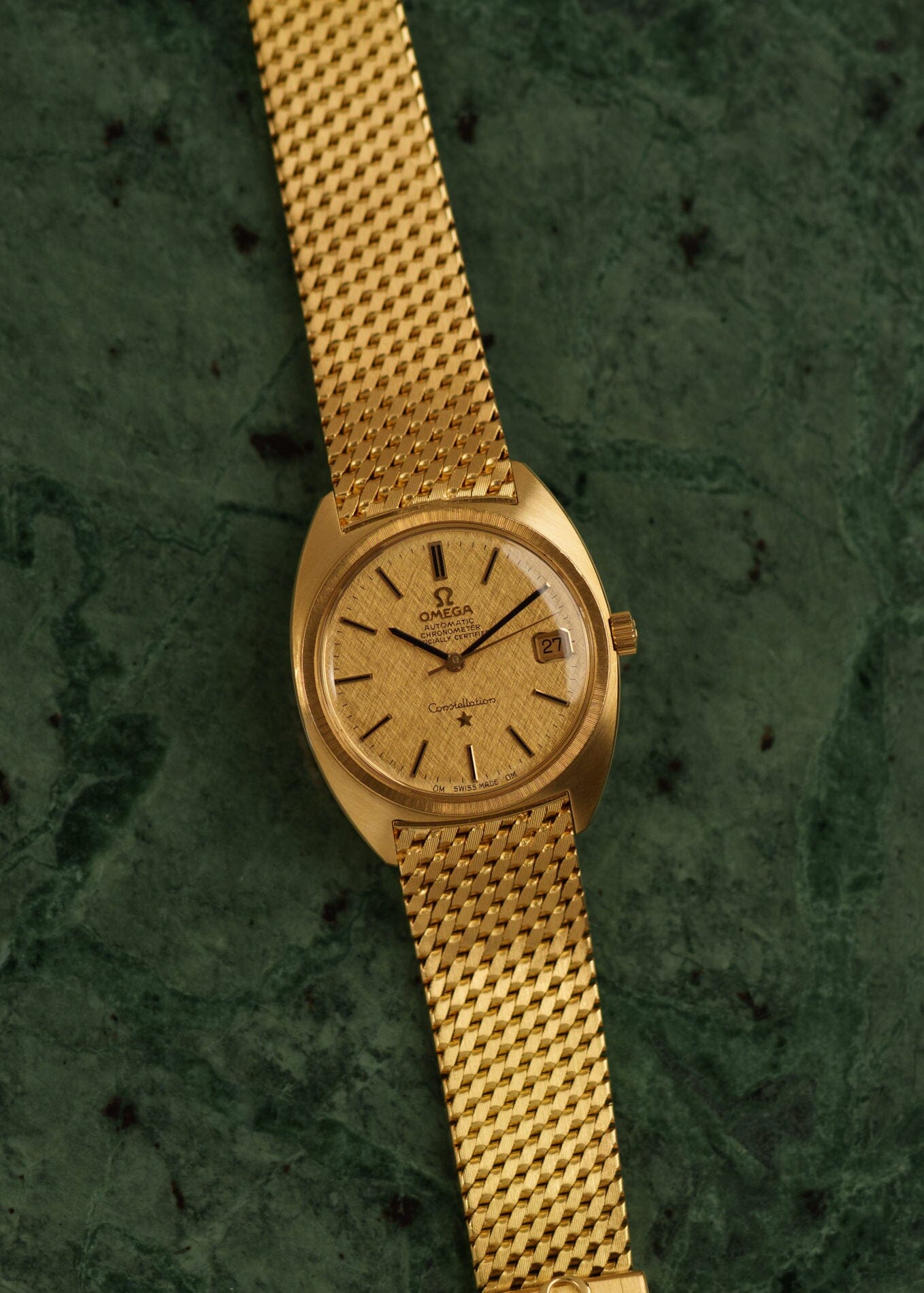 18K yellow gold Constellation watches are not particularly rare, but they are much less common when they come with genuine 18K bracelet. In addition, the case, dial, movement, and bracelet are all in excellent condition, which makes this watch a great value.
