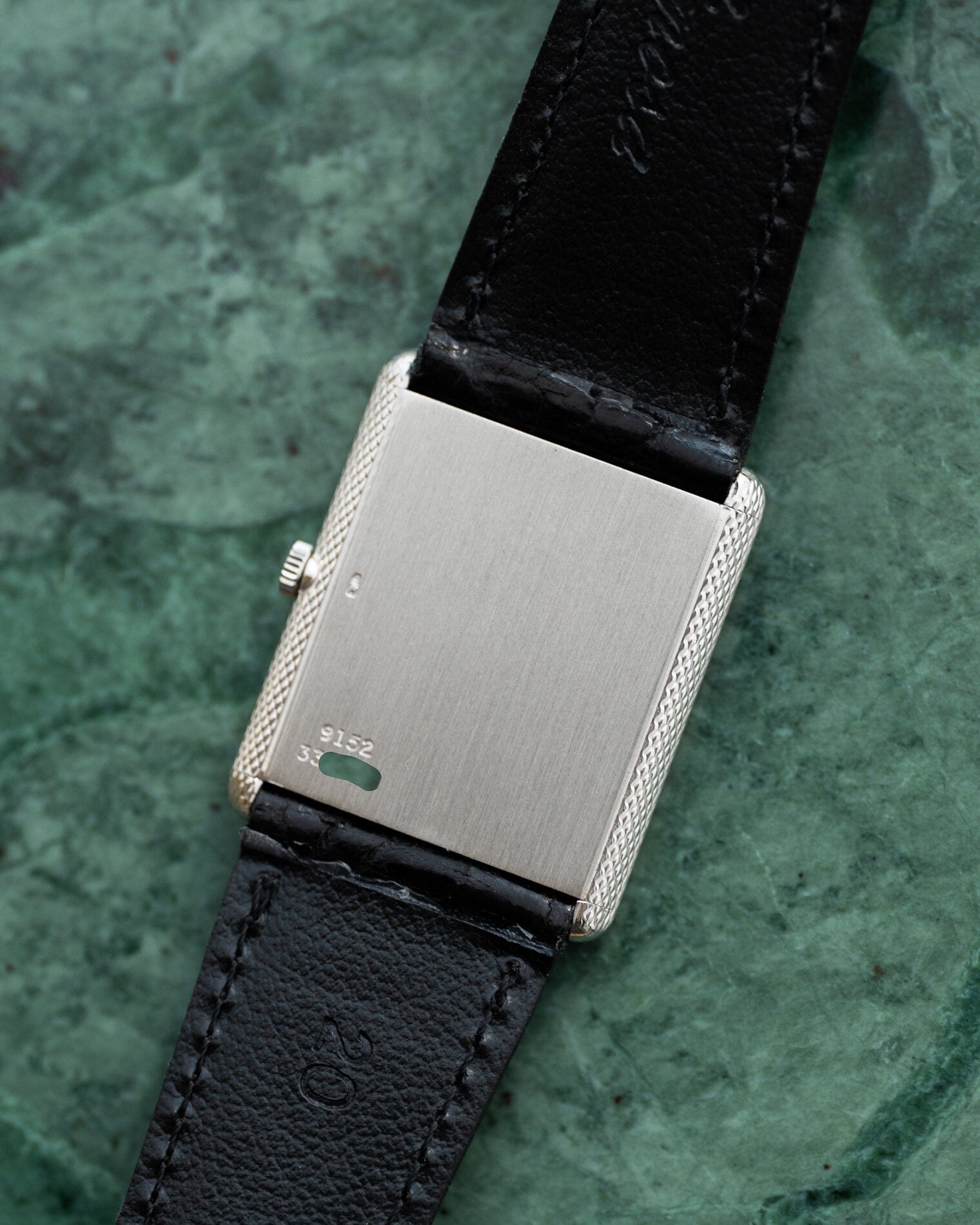This watch is a hand-wound dress watch with a beautifully decorated rectangle case, Ref.9152 manufactured in the 1970s.