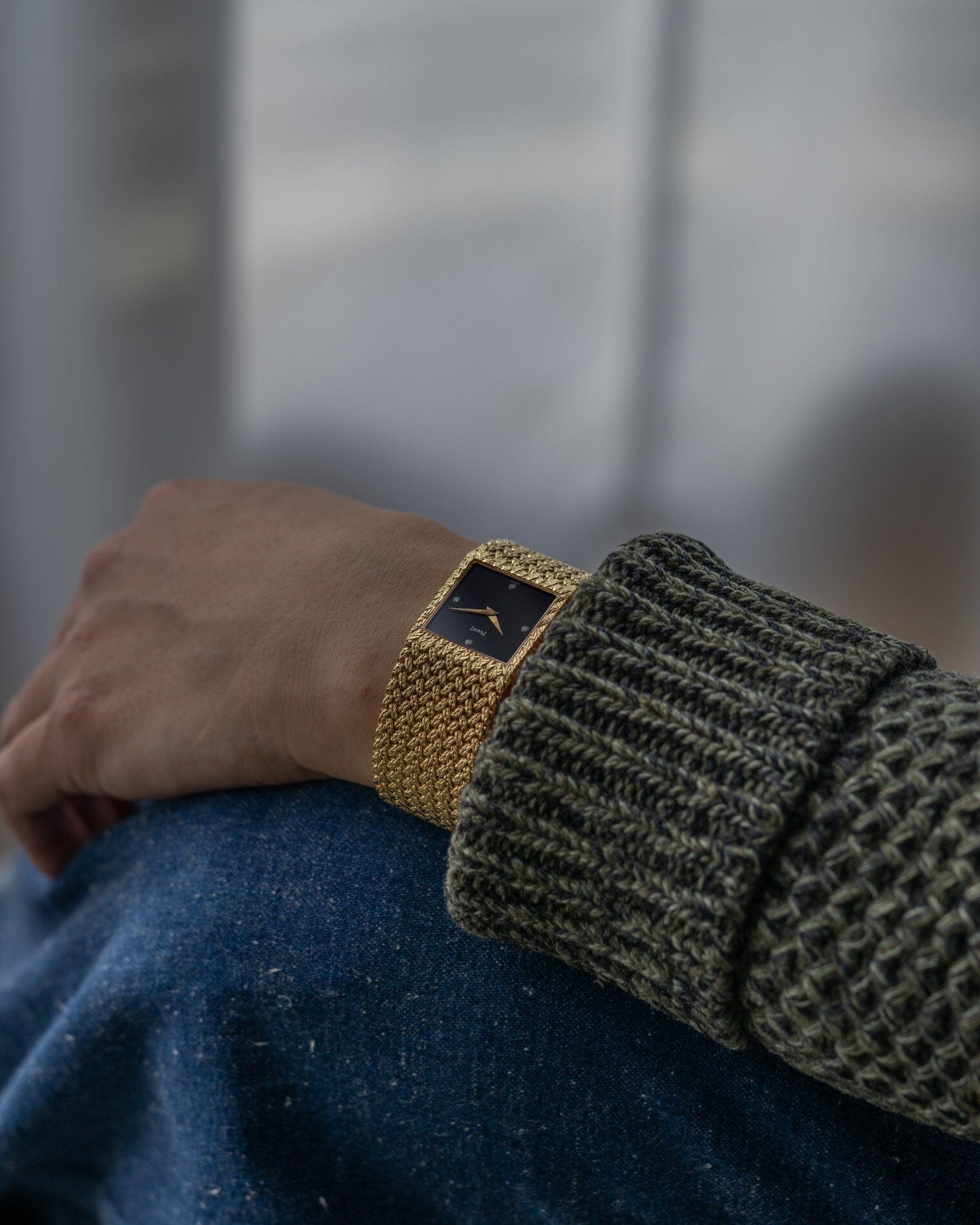 This watch is a hand-wound dress watch with a beautifully decorated integrated bracelet, Ref.934D2 manufactured in the 1980s.