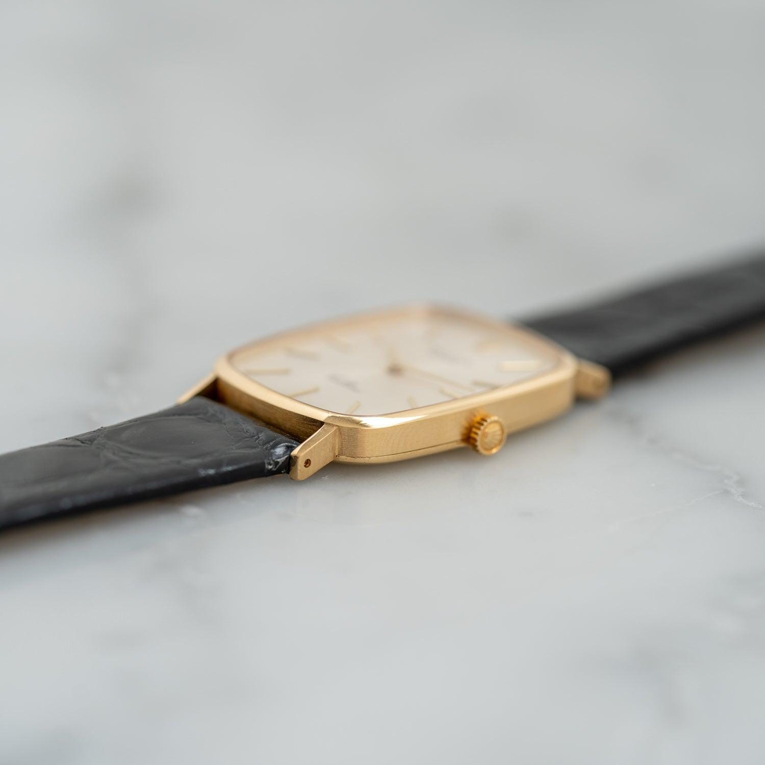 This reference 4113 is an 18K yellow gold watch with a rounded rectangular case.