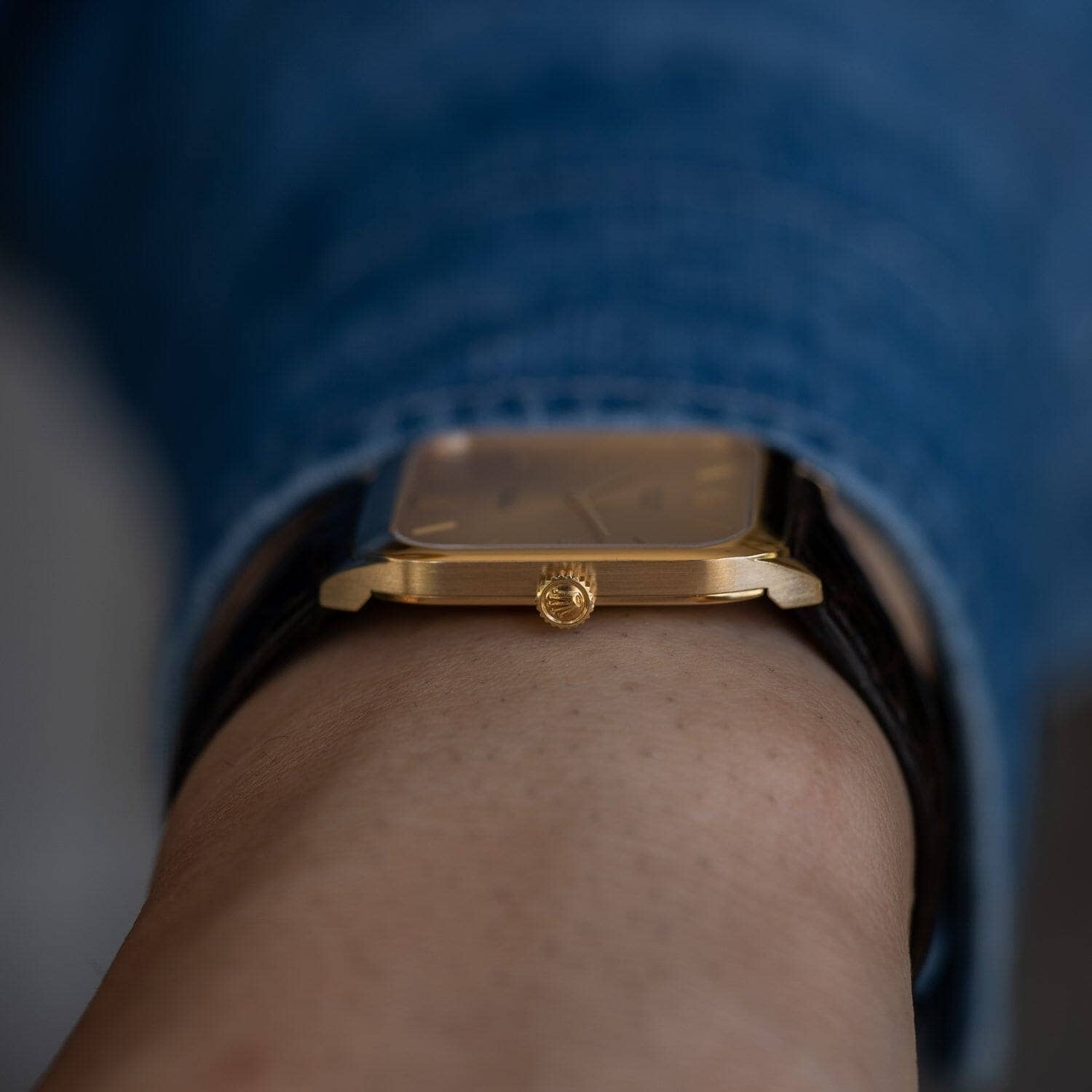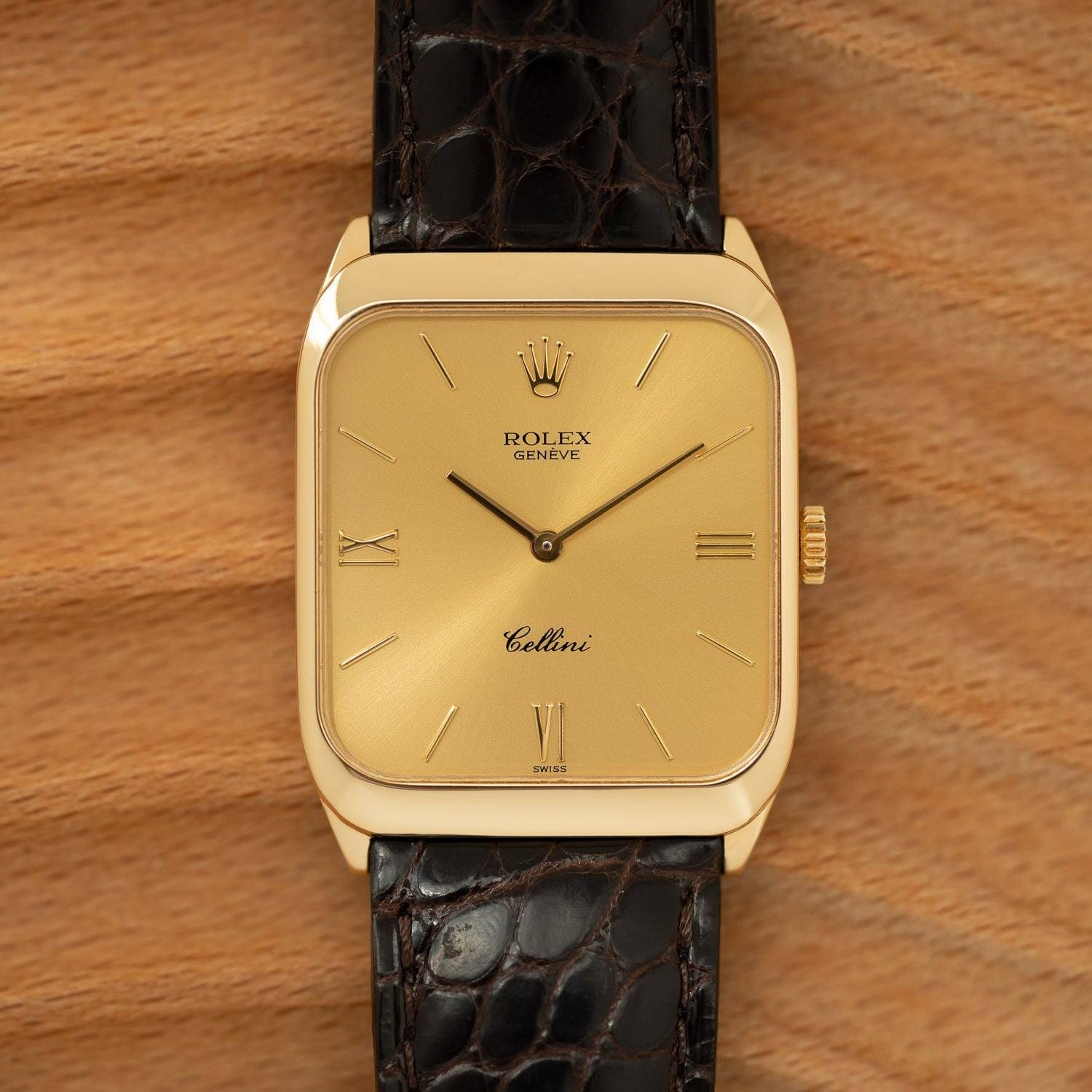 This is Rolex Cellini Ref.4135, has an unusual design with a rounded rectangular case.