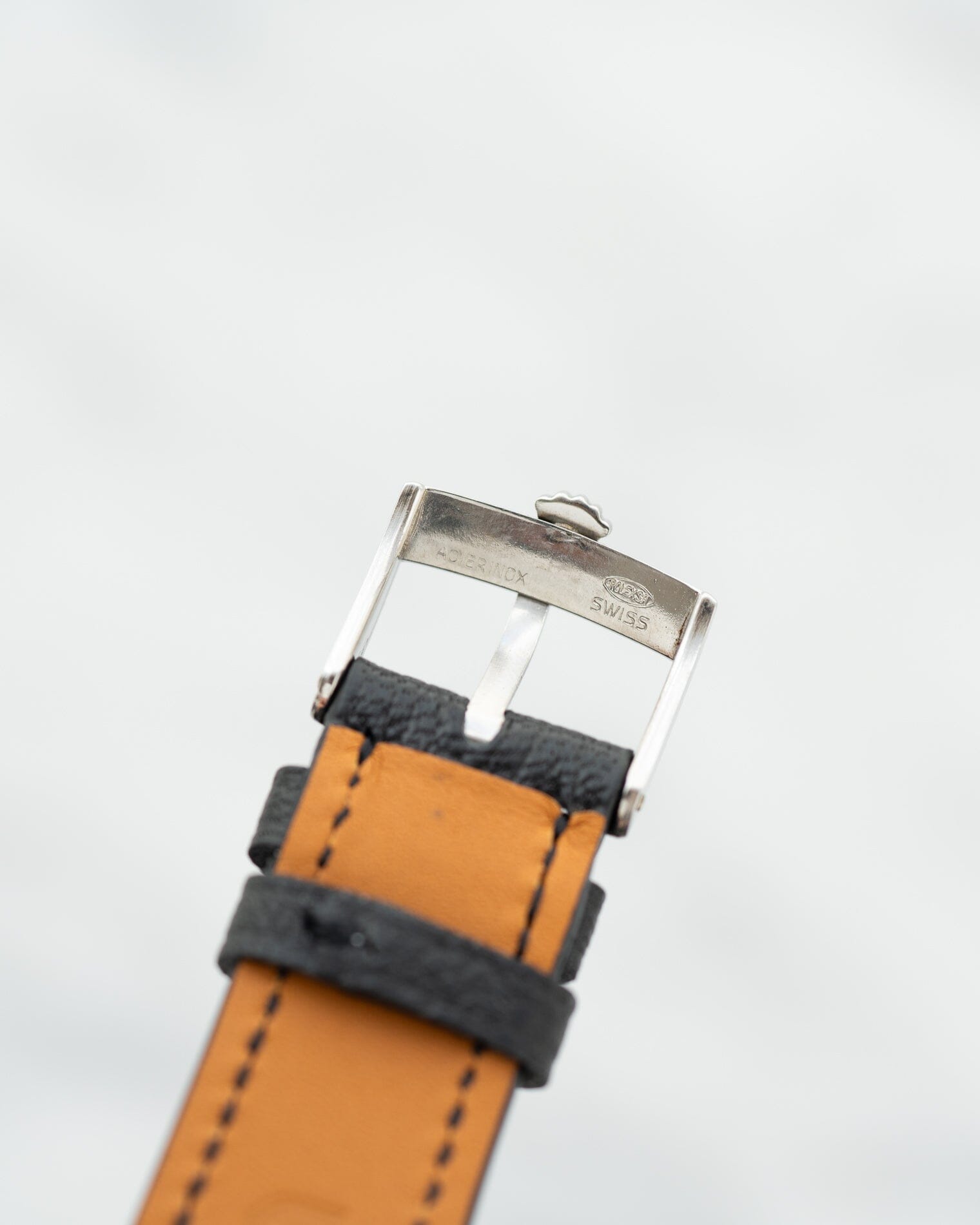 Since a quick change is not installed, the day of the week and date are adjusted by moving the long hand back and forth.