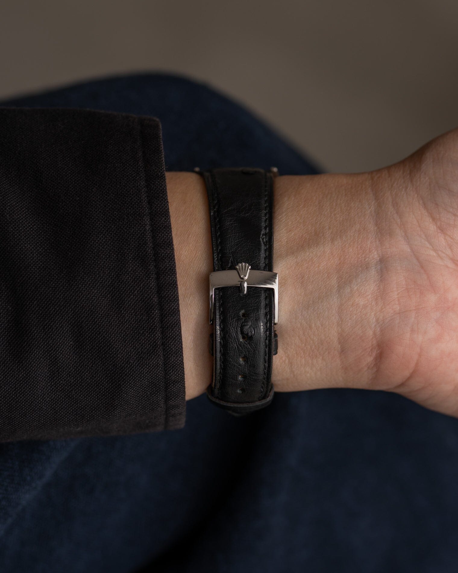 The case is made of 18K white gold. It has a very subdued colour, and at first glance it looks like stainless steel, but if you look closely, you can see that the luster is different, giving the impression that it is a gold watch, but not too conspicuous.
