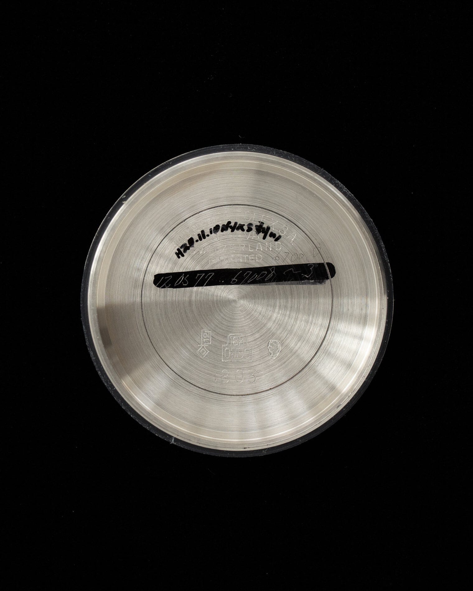 The movement is the self-winding Cal.1556, a later version of Ref.1803 with a frequency of 19,800 vibrations instead of the 18,000 of the earlier model.