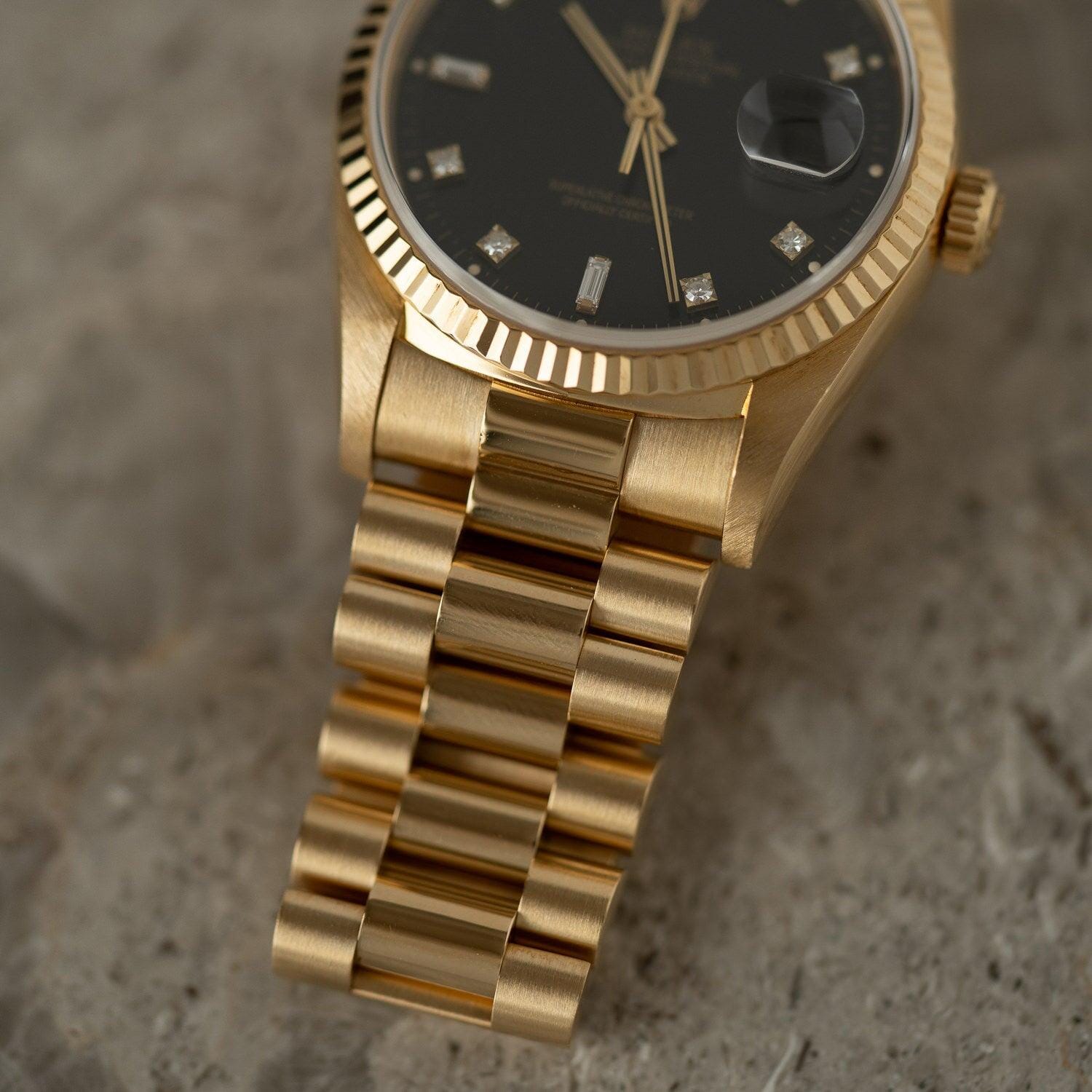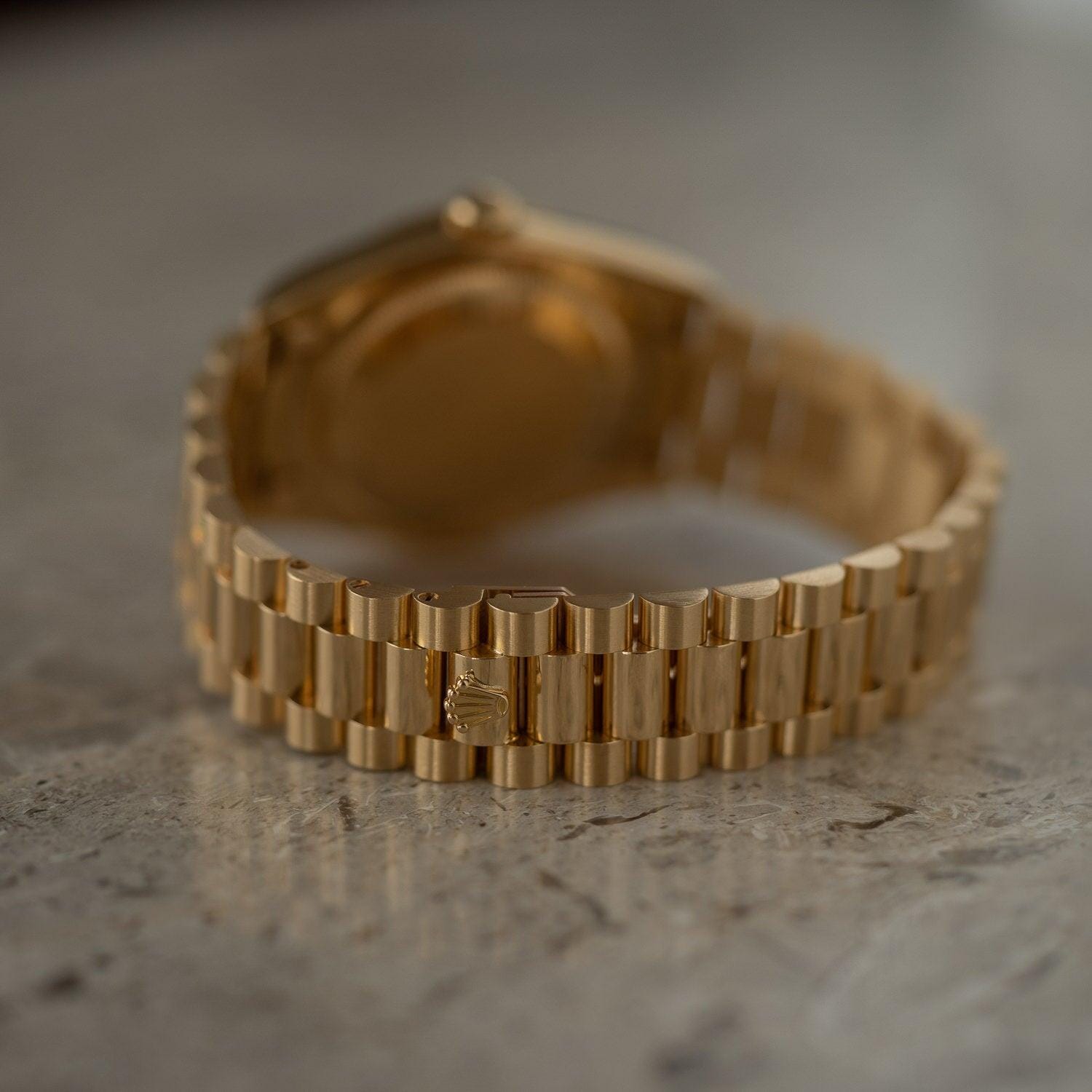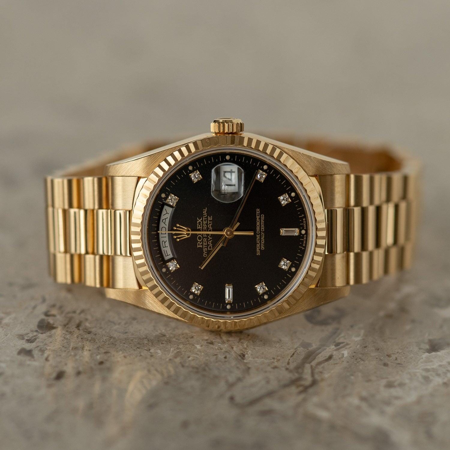 Introduced in 1956, the Day-Date was the world's first waterproof self-winding chronometer wristwatch with a date and full-spell day of the week on the dial.