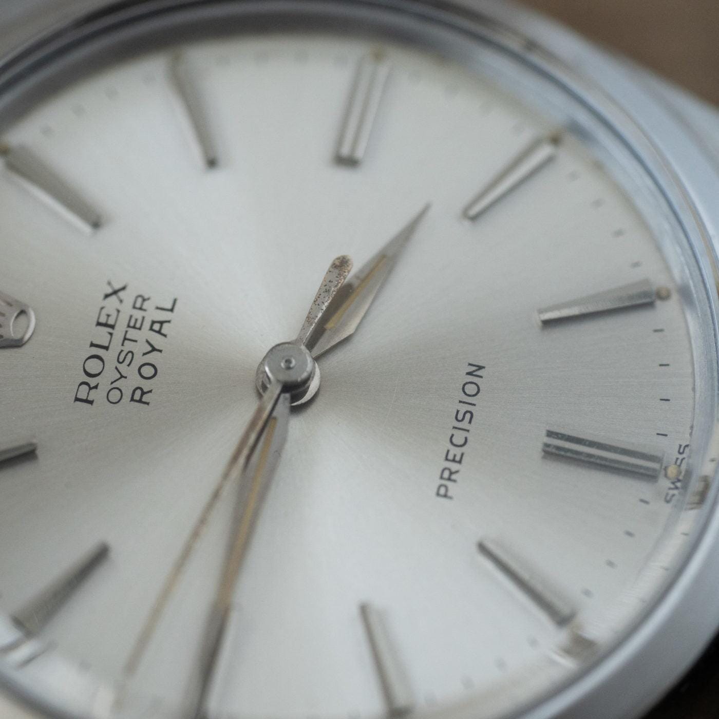 ノンデイトの手巻きのロレックス オイスタープレシジョン。ロイヤル銘の入った珍しいモデルです。1963年製。